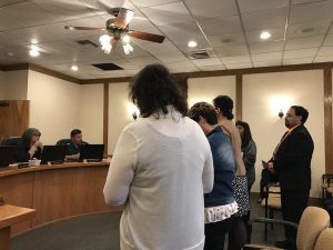 Becky Gallegos, principal of Valley Schools, where the middle school fell from a C to an F, presented her improvement plan with several members of her staff beside her at the lectern.